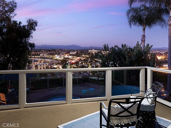 The kitchen features stone counters and has views of the private backyard with its extensive views. The kitchen is open to the fire-lit family room. The romantic primary suite includes a balcony to enjoy the panoramic city light and mountain views along with a reimagined primary bathroom featuring travertine and marble tile separate shower, luxury soaking tub, dual sinks and vanities as well as his and hers walk-in closets. Two additional secondary bedrooms and a Jack & Jill bathroom complete the second level. The backyard with its sparkling pool and raised spa along with a stand alone custom barbecue island make this a perfect opportunity to enjoy California living. Located with easy access to major freeways, hospitals and shopping centers yet tucked away with peaceful privacy, this home is an exciting opportunity to enjoy all of the pleasures of coastal living.