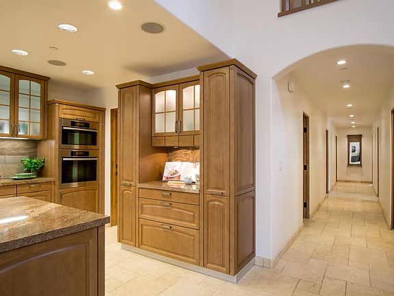5 bed+office, 3.5 bath home just two blocks from Mission Trail and an easy walk to downtown Carmel. A beautiful home for entertaining,enter into a two story great room with gourmet kitchen, huge pantry, wet bar and Carmel stone fireplace opening onto the sunny patio through three sets of French doors. Granite counters, Miele, Liebherr, Wolf appliances, dual convection ovens, vegetable sink, wine fridge, custom German cabinets. Travertine and wood flooring throughout and radiant heat with multiple zones. Beautiful large, private master suite with Carmel stone fireplace and walk in closet. French doors leading out from each of the four downstairs bedrooms. Fully fenced and very private with an electric gate, oversized garage and tons of storage. Amazing space for a Carmel home. Flexible floor plan, 2 bedrooms with Jack and Jill baths on each side of the hallway downstairs - could use an entire wing as a bedroom/bathroom/living room for in-laws or guest,all with exterior entrances.