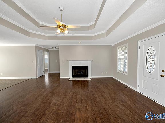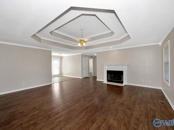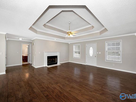 • Features: Ceiling Fan(s), Crown Molding, Fireplace, Tray Ceiling(s), Wood Floor