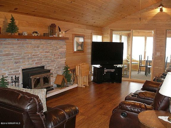 1.5 story loft home, remodeled and in excellent condition. Recently painted. Large kitchen, dinning room, family room combination. Vaulted family room. All beautifully adorned with cedar plank wood. The front porch is practically on the water and has three beautiful new windows with a life time