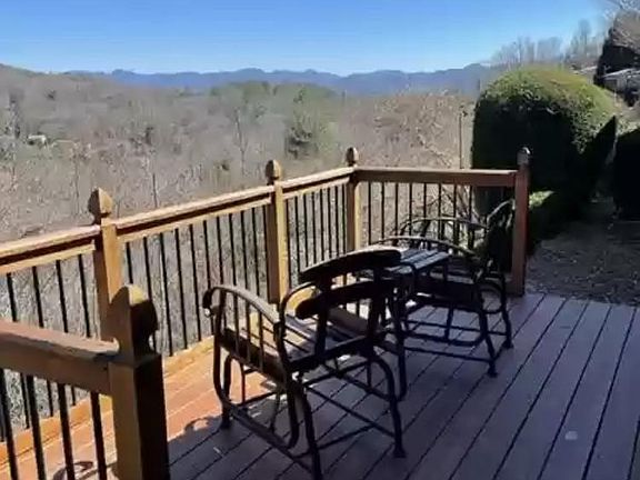 Fore! A Golfer's Paradise! Victoria's Villa is located on the very top of Mill's Creek Golf and Country Club, with a beautiful 18-hole golf course. Private, Gated community. Ridgecrest Villas is a very desirable community. Perfect For vacation rental or short term. Long term rental also available. Absolutely stunning Mountain View!! Enjoy your morning coffee on the private deck while watching the spectacular sunrise over the Smoky Mountains! Victoria's Villa comfortably sleeps 4 adults. Huge en suite Main Bedroom (King) opens to the screened-in sunroom, with Mountain Views. Spacious Guest room (Queen.) Both bedrooms have super plush mattresses. Your kids/grandkids will love having a slumber party in the bonus bunk bedroom located just off the screened sunroom. Cathedral ceilings, freshly painted, new carpet in bedrooms, gorgeous new wood floors, tons of windows for natural light. Two full bathrooms. Grab a book or magazine, play cards or challenge your family to a board game, while relaxing on the oversized recliners and comfy sofa in the huge living room. Let Victoria's Villa be your home away from home. We have everything you need: WIFI, Smart TV (BYO subscriptions). Games, puzzles, books, DVD player & movies, Washer/Dryer. Free level parking. Towels, Linens, shampoo, soap and hair-dryer. Create a magical meal in your well-equipped kitchen, with a passthrough window to the dining table. Enjoy the coffee station. Shopping, grocery stores, restaurants and breweries in Franklin are very close. Visit the area's fishing, hiking, Gem mining and many popular waterfalls. Let Victoria's Villa be your Mountain Getaway for a month, or longer. The mountains are calling.... *sorry, no pets due to allergies. No smoking. **Available long term. Please contact me for details for long term rental details. Utilities not included. No smoking/no vaping. No pets. (Use of Gas fireplace only during colder months). Parking for 2 vehicles (garage not available). One time $200 cleaning fee. Short term Rates: $750.00 per week or $2500.00 per month; Plus security deposit $1000.00.
