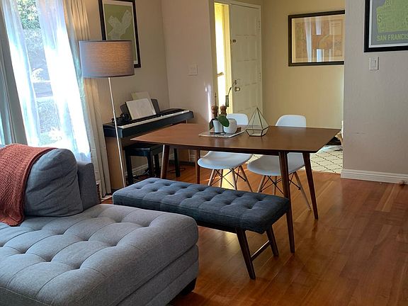 A charming 2 bedroom, 2 bathroom house within a small triplex in Mountain View is available for rent. This home includes a two-car garage, washer/dryer hookups, and a small private patio area. A versatile bonus space can be used for storage, a small office, or a workout area. Situated on a very quiet street with minimal traffic as it dead ends at the Willowgate Community Garden, the location is ideal for outdoor activities. It is very bikeable and within walking distance to Stevens Creek Trail, Caltrain, the Sunday Farmer's Market, and Downtown Mountain View. Tenant is responsible for all utilities, water, trash and recycle. Applicants must complete a rental application and credit check. Please call for quickest response. Note - pictures are from a previous tenant and will be update soon. The tenant is responsible for all utilities. No smoking. Rental insurance required. One year lease. No subletting. Minimum requirements: income 2.5x rent, credit score 675. Cat allowed with additional pet rent and pet deposit. Available early November Do not disturb current tenants