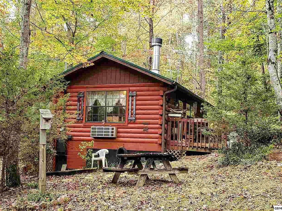 Super cute studio/one bedroom, one bath log cabin offering country living at its best! Located in an area of permanent residences, second homes and vacation rental properties--away from the hustle and bustle of town but just a short scenic drive to supermarkets, shopping and restaurants in Sevierville. All furnishings remain. Wood burning fireplace. Enjoy the large private lot--look close at the pictures to see a pergola, birdbaths, bird feeders, picnic table, park bench, outhouse (decorative) and a red heart shape tub being used as a flower bed!! The very low HOA fee covers a community well water system and road upkeep.