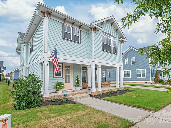 Welcome Home! Located on the most sought-after street in Riverwalk, this exquisite home offers the perfect blend of modern luxury & timeless architectural charm. Situated on an interior lot with an oversized two-car garage without backing up to an alleyway--a rare find in the neighborhood, which offers you a spacious fenced-in yard. This charming home features an open floor plan, beautifully appointed kitchen with a huge island, quartz countertops, gas range, oversized windows, elevated 9 ft ceilings on both levels, generously sized bedrooms with walk-in closets, tons of storage & offers plenty of space & comfort for everyone. Located in an amenity-rich community, Riverwalk boasts a lifestyle like no other—with features including direct access to the Catawba River, walking trails to stroll along the river or even kayak! A pool, clubhouse and a BMX track too! Enjoy a village of shops & restaurants, stroll to a local brewery or a dining experience at The Pump House overlooking the river.