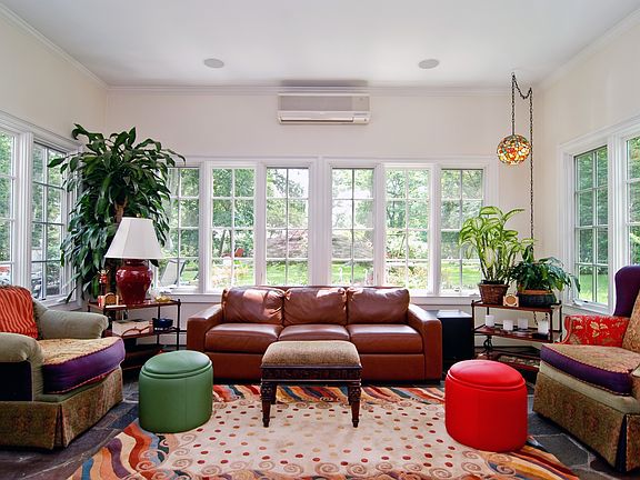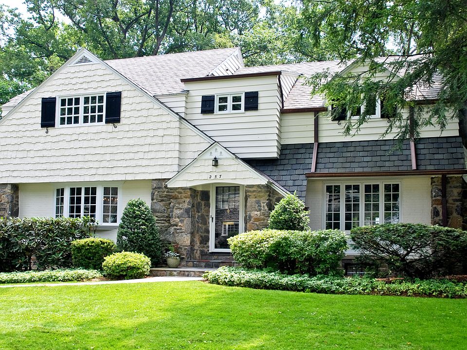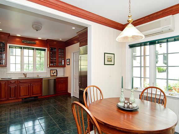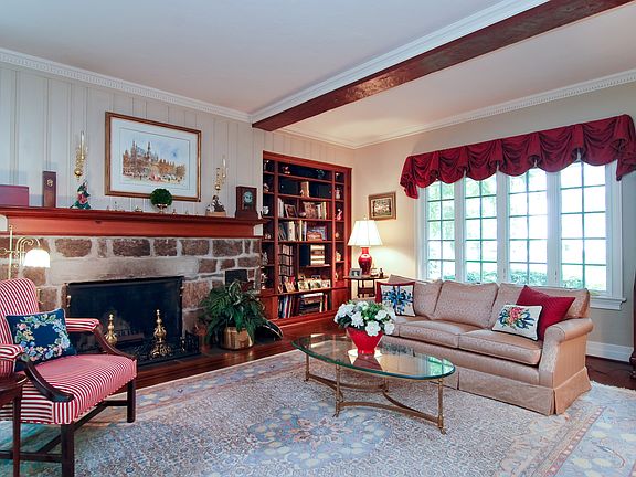 Classic five bedroom stone and shingle Center Hall Colonial beautifully set on large level property. Charming living room w/rustic stone fireplace gracious dining room renovated kitchen featuring Miele Wolf and Sub-Zero appliances granite countertops and cherry cabinets. Sunroom plus den that leads through glass doors to patio secluded hot tub area and expansive garden beyond. Quick walk to Metro North 33 minutes to Manhattan. Enjoy the beauty of this Long Island Sound Community.