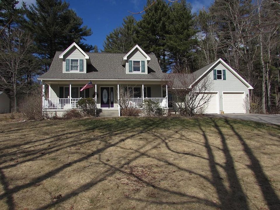 WELCOME HOME! This house is looking for a new owners to love! This is not your typical little Cape, from the fantastic front porch that is begging for a pair of rocking chairs to the naturalized back yard with room to run overlooking the woods. As soon as you walk into the spacious mudroom with built in boot box and plenty of closet space to hang your hat you will want to stay! Large, fully applianced kitchen flows right into dining area that opens to a graciously sized living room, all offering hardwood floors. First floor master, a full bath and main level laundry room round out the first floor. Upstairs you will find two very generous bedrooms each with its own unique layout plus another full bath! Sliders lead out to a private deck and hot tub (see disclosures) Oversized two car garage and plenty of parking. Easy access to local highways and just about 20 minutes from "everywhere". Don't miss out!