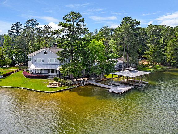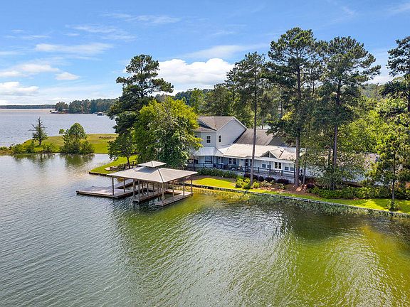 Lodge paradise on Lake Martin with great rental history! This 11BR/9B home is set for a large family to enjoy on this peaceful level lot. Shade trees offer relaxation outdoors w/ covered porches and decks facing the 360'of waterfront. Newly constructed composite sun deck, covered boat house and fire pit offer endless entertainment options. Over-sized great room and kitchen offers water views! Second floor in main house boasts BR's w/ private baths, kitchen and den. Game room, off foyer, is an extra bonus! Home can function for multiple rentals at one time w/ separate keyed entry and 3 kitchens that occupy the space. Attached garage with additional parking areas. Upgrades make this a one-of-a-kind jewel! Perfect for an investment opportunity or multi-generation family.