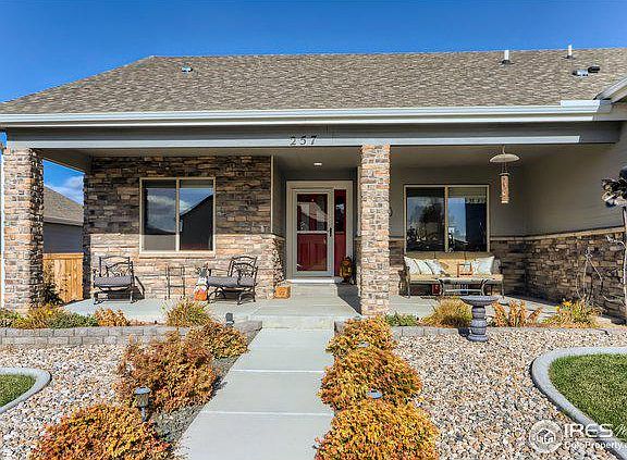 This is the property that's almost impossible to find: low maintenance w/ a huge shop & sprawling ranch in town near 1-25! Featuring a corner lot, extra large front porch, two driveways, side load 2 car + garage & well manicured landscape. This is the tip of the iceberg though, head inside to the thoughtfully laid out floor plan featuring an open concept great for entertaining, wood floors, walk-in pantry + butlers pantry, double ovens, granite, upgraded cabinets, & huge breakfast bar round out the stunning main area. The master (& laundry) are on the main & feature a 5 piece bath plus ample sized walk-in closet. The fully finished basement is amazing too! However the home run is the AMAZING shop, 1,338 sq/ft,-fully drywalled & painted w/ bright LED lighting, 220v (w/ 30 AND 50 amp), & XL garage door for RV. Not only do you have your two car driveway, plus driveway in front of the shop but extra storage in the back/side yard with large gate & more parking beside the shop!