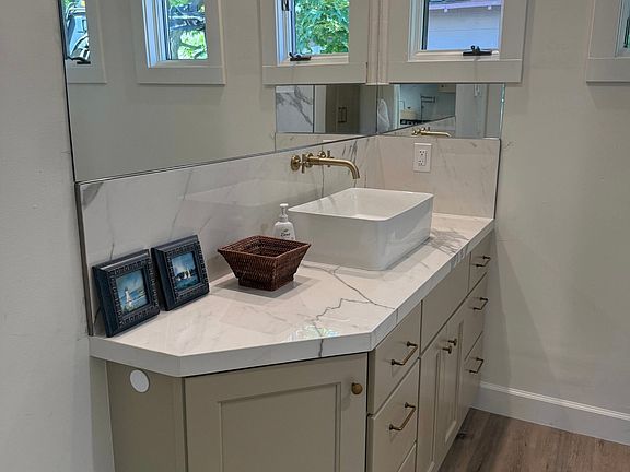 Beautiful equipped with stainless steel Bosch Appliances, beautiful countertops, well stocked kitchen perfect for home cooked meals.