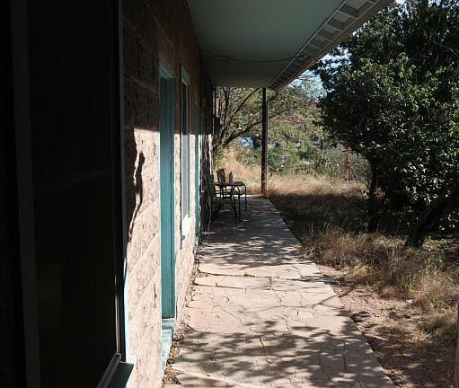 Very eclectic yet super solid home. VIEWS! Slump block construction, heavy gauge metal roof, concrete slab and dual pane windows. The 36 steps (recently poured concrete) to the home provide some incredible views and total privacy. There is a neighbor on the same level--however there is a door to get the total privacy. Kitchen has painted concrete and the rest of the home has a raised wood platform. Evap cooler works well as there are some nice shade trees and a large western facing overhang for cover from sun and rain. Great and expansive sitting spot! Deeded off-street parking spot on seperate tax parcel out of the flood zone. The full bathroom, clawfoot tub, is outside the bedroom, in a separate building. 106-63-194D separate APN for parking space, 896 SF.