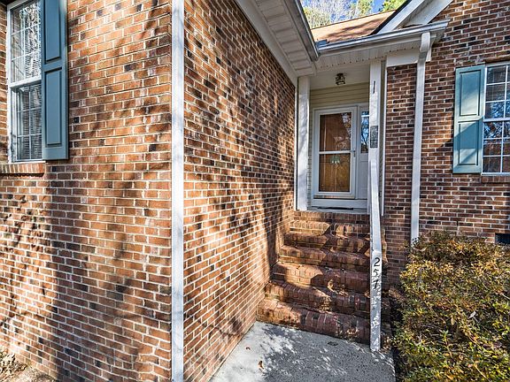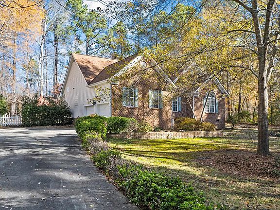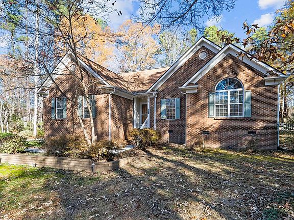 Convenient one floor living on over 1 acre! Classic brick front home boasts 2 car side entry garage with huge parking pad, spacious family rm w/vaulted ceiling, skylights & gas log fireplace & formal dining rm perfect for holiday gatherings. Large breakfast nook overlooks private back yard. Grand owners' suite features vaulted ceiling, 2 closets, garden tub & dual sink vanity. Inside the fenced yard you will find a gazebo, 2 storage sheds & a quaint bridge; a nature lovers dream!