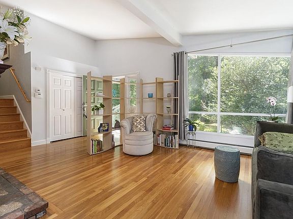 This lovely home has a Zen feeling of balance and relaxation. Open concept living space with gleaming hardwood floors and high ceilings. Updated windows provide lots of natural sunlight. The new kitchen offers stainless steel appliances and contemporary cabinets with glass displays and recessed lights. New full bathroom has spa-like feel with soaking tub and glass & tile enclosed shower. Lower level has media room with full windows, bamboo flooring and built-ins as well as gym and laundry space. Outside, stone walkways are surrounded by lush gardens throughout the yard. Entertain or unwind on the deck off the main living space that overlooks the private lot.