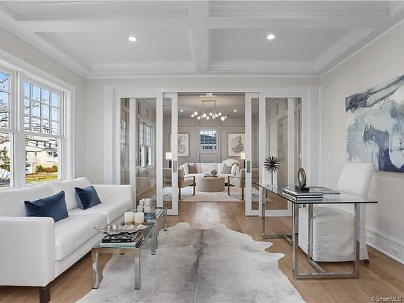 NEW CONSTRUCTION - NOW COMPLETED. The Modern Coastal Lifestyle OFFERED TURNKEY - FURNISHINGS INCLUDED: SHOWINGS/VIRTUAL TOURS/VIDEOS AVAILABLE. TEXT "Colonial" to 203-200-7831 for 3D Walk Through. Also, TEXT at 203-650-1583 for more info from Denise Walsh. Just COMPLETED NEW CONSTRUCTED AND just FURNISHED. This home marries a modern perspective within a classic coastal exterior, connecting form and function, STYLE and SOPHISTICATION with an inspired selection of fixtures and finishes. CELEBRATE the vibrant water community with an exposure that embraces the sunrise, sunset and views of the ocean and beach. ENJOY the covered deck off kitchen, 3-season entertainment loggia, outdoor shower and pool site. The builders artistry is evident in how they elevate traditional elements in a sophisticated way, adding a modern layer of finishes that complement one another for a light, airy and stunningly fresh composition. Answering todays need for OPEN CONCEPT GATHERING, the great room embraces the family room with fireplace, dining, kitchen and butlers pantry. Wifi kitchen appliances, bespoke modern hood and Neolith backsplash combine forward-thinking style with the warmth of the expansive white oak island, farm sink and select wide plank floors. Catering to small and large-scale entertaining, ingeniously placed SLIDNG GLASS PARTITIONS turn private study and den into a grand dining room. Todays expected amenities are all here: ELEVATOR, WALK-IN PANTRY, gorgeous wet bar, custom built mud room, luxe master with TWO WALK IN CLOSETS, vaulted ceiling, linear fireplace, custom fabricated tiling and in the upper level entertainment suite, an angular black wetbar. This is a home passionate in its pursuit to offer a full lifestyle. Ask for flipbook for all info. Love Where You Live Homes has built throughout the beach area including Edward Street, Rhoda, Howard, Pratt, the Village at Southport community, Birch, etc. Ask list agent for list of previous new construction HOBI award winner. ADD 300 SF FOR ROOF TOP DECK.