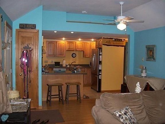 Desirable South Deerfield, this home has been transformed with quality renovations and updates. The kitchen and living room are open with cathedral ceilings, recessed lighting, bright and clean laminate flooring. Practical & functional kitchen remodeled to include stainless steel appliances, corian countertops and plenty of cabinets in addition to a pantry. The den with shiny wide pine flooring could be easily transformed to a home office or second bedroom. Pleasing maple floors were installed in the master bedroom along with Trex balcony/deck for those summer evening sunsets. Brand new gutters,front entry door and storm door, 400 series Anderson sliding glass door and four windows. Freshly painted exterior, improved stone driveway increased parking, fenced back yard with patio accessible from the sliding glass door in living room. Equipped with a Nest Protect System controlled by your mobile device. Simplify your life, small house living, the new trend allowing you to enjoy life!