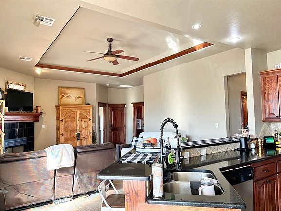 Beautiful 4 bedroom country home in Elgin School District! This open floor plan features a spacious living area with a barrel ceiling, chef's kitchen with granite counters, a large breakfast bar, stainless appliances and a sunny dining area with a bay window. Mother-in-law plan with 3 bedrooms and a full bath on one side of the home and a secluded owner suite. Walk-in closets and good storage space throughout. Watch the sunset from your back porch where the only neighbors behind your home are a few cows. Nice shop with concrete floors and automatic door opener. Storm shelter in the garage. This one has it all! Must see! Refrigerator, washer and dryer, generator and carpet are negotiable.