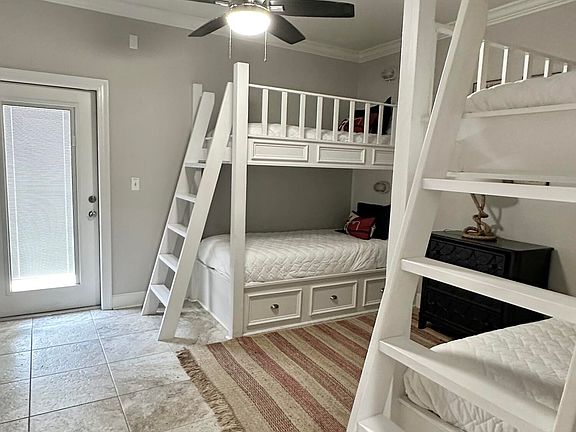 Indulge in the splendor of one of the bedrooms, which features beautifully crafted built-in bunks, adding a touch of whimsy and delight for both young and young-at-heart. With ample storage solutions seamlessly integrated throughout the townhome, you can revel in the joy of an uncluttered and organized living space.