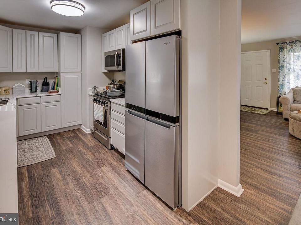 You can move right into this well-maintained ranch home, located on an easily accessible street. You will not believe the quality and care the current owner has provided for this home. The gourmet kitchen with quartz countertops, luxurious soft-close cabinetry, and built-in drawer storage will take your breath away. Upon entry, you will be welcomed by new luxury vinyl plank flooring with a modern design. The spacious living room will lead you to a dining area, open to the kitchen, for purposeful functionality. Off of the kitchen, you find a laundry/mud room addition that has a side door for easy access to the driveway and fenced-in rear yard. This home has 3 nicely-sized bedrooms. One of the bedrooms is currently being used as a work-from-home space and has sliding glass doors leading to the fenced-in rear yard. This home is adorable and is move-in ready. Schedule your tour today or join us Sunday for an Open House 1-3 pm.