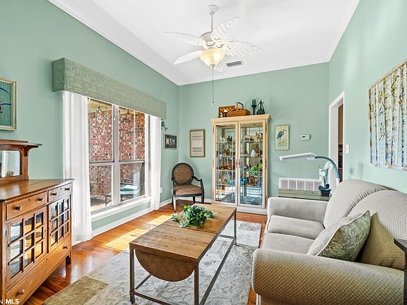 Located in desirable Falls Creek, this meticulously maintained 4 bedroom, 2 bath home is ready for its new owner. This home was built by ARK and features: Split floor plan, high ceilings, wood flooring in the main living areas and halls, updated kitchen, separate dining room currently being used as a flex space, screened back porch, updated landscaping and landscape lighting, irrigation system with separate meter, and low HOA fees. The private, flat, fenced backyard offers no view of neighbors on either side and no neighbors directly behind. Falls Creek is located just minutes away from all that Fairhope has to offer. All information deemed reliable but not guaranteed. Buyer to verify any information deemed important.