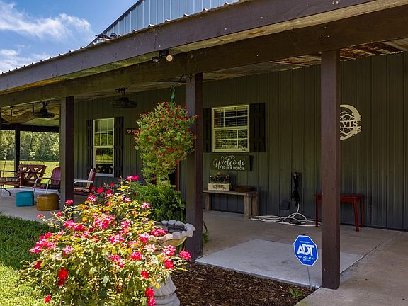 One of a kind home and location! This beautiful barndominium has so many wonderful features. You will enjoy sitting under the large porches enjoying the quiet and the view of the manicured property and large pond. There are 3 very spacious bedrooms with one of the bedrooms currently being used as a dining room. The primary bedroom is oversized with a big walk-in closet. There is a linen closet behind the barn door in the living room, a storage closet in the hall and a pantry. Propane fireplace for those chilly winter days ahead. Well insulated home with low energy bills. There are 2 separate garages with one currently being used a shop. There is an additional 13x24 shed. Underground storm shelter. All LED lighting inside and outside. Agents see remarks