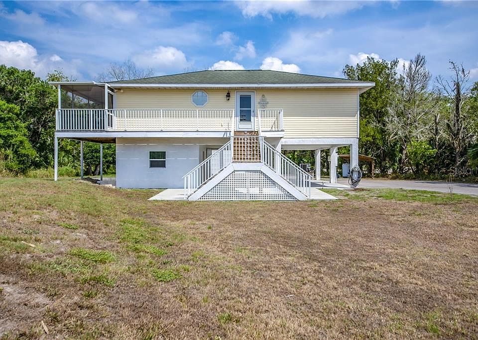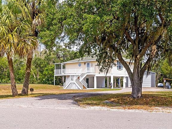 The perfect Country Home in Town! This home was custom built in 2003 on a gorgeous 1.46 acre lot. This dream residence offers two bedrooms, two baths, plus a downstairs bonus/storage room. Open and bright, the living area flows into the kitchen and dining nicely. There is a very large master suite complete with garden tub, walk in closet, and brand new vanity. The home has been well cared for, and offers some very tasteful touches and features. Porches wrap around the front of the home and connect with the balcony off the living room. All windows come with hurricane shutters. The downstairs 28 x 13'6" bonus room is currently used for storage, and is not included in living square footage, however has a ton of possibilities to become whatever you want it to be. Behind the bonus room, there is RV power wired to the back of the home, in order to park an RV. The 30 x 36 Metal Garage/Barn/Workshop was built in 2019, has 3 garage doors, and is every motorhead's dream! It was built with 14 foot walls so a lift can be installed, and wired for a lift, with air compressor tubing throughout. It also has a bathroom that has hot and cold water, an outdoor shower, a loft area, and a 14 1/2 x 6 concrete pad in the rear for the compressor. Don't forget to view the impressive 1.46 acre lot. The front of the lot contains the home and out building, and a creek runs through the center of the lot, with woods in the back. Only the area near the creek is in a flood hazard area, the home and barn are completely out of the areas that require flood insurance.