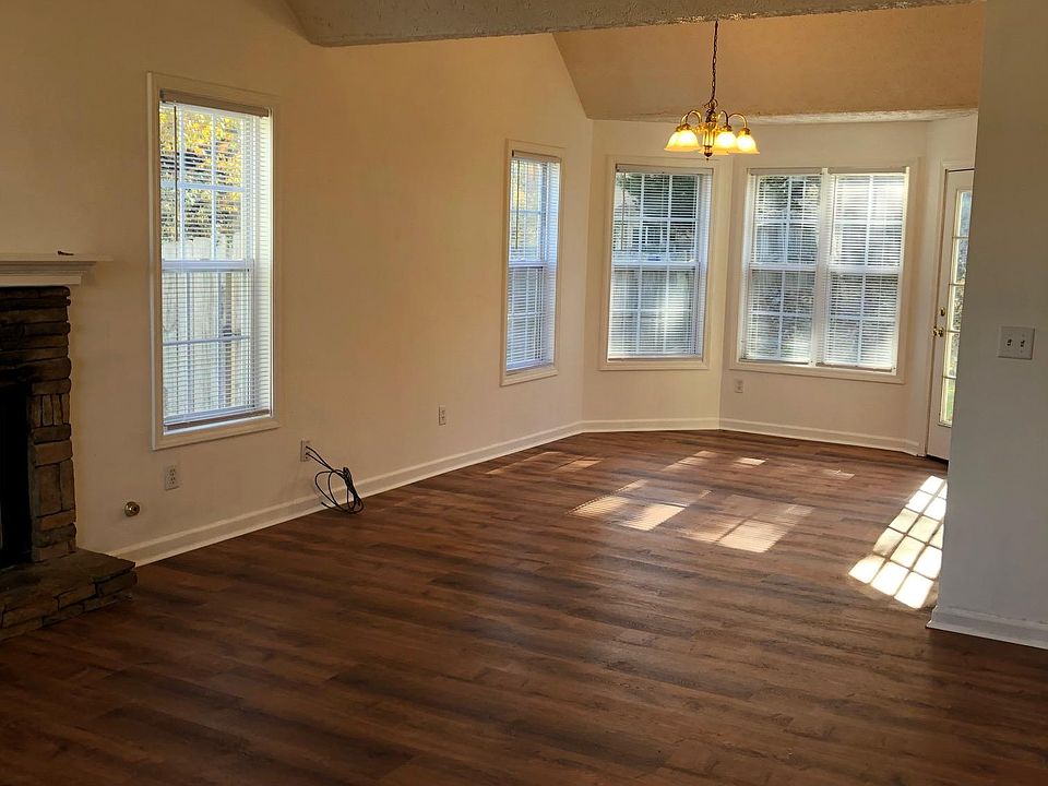 Single story three bedroom two bath home in a quiet neighborhood. Two car garage, fire place, new flooring, carpet and paint. Updated appliances. The house has a fenced back yard. Small dog less than 20 pounds acceptable.