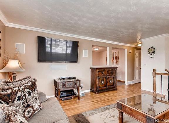 Beautifully Updated Bi-Level located just blocks from Historic Downtown Castle Rock. At nearly 3500 finished square feet this home boasts unbelievable space at every turn! Along with 5 bedrooms and 3 bathrooms this wonderful home features a master bedroom with vaulted ceilings, master bathroom with a walk-in closet, dining room, eat-in kitchen, living room, media room, dedicated private office space, and a huge bonus room to create your own home theater or play room or home gym or accommodate a home-based business - the possibilities are endless. The upper level's sprawling hardwood floors lead to french doors that open onto a huge rear deck and backyard oasis with a step-in hot tub, mature trees & landscaping and a lush private lawn - perfect for enjoying quiet evenings with good company! This home is truly one of a kind with a tasteful use of space. Lower level currently accommodates Seller's home-based business, easily adapted back to daily living space with very little effort.