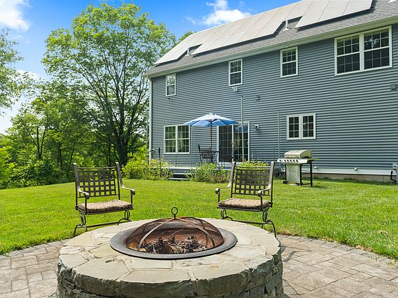 Solar panels paid off! Set on 3.5 acres of lush, private grounds, this 2016 Colonial is where luxury living meets modern efficiency. From the first glimpse of its stately facade and inviting covered porch, you'll know this home is anything but ordinary. Inside, 9-foot ceilings and sun-soaked rooms set the stage for everyday elegance. The show-stopper? A true chef's kitchen featuring Bertazzoni double ovens, a JennAir gas cooktop, and a dramatic 7-foot waterfall granite island-perfect for gatherings that spill seamlessly into the open-concept living spaces. Rich hardwood floors carry through the main level and into the primary suite, while oversized sliders lead you to your private outdoor oasis. Here, evenings are made unforgettable with a stone patio, built-in firepit, and sweeping views of the manicured grounds. This home is as smart as it is stunning: 36 owned solar panels, a 2-zone energy-efficient system, generator hookup, and water softener bring peace of mind and ultra-low costs-electric bills maxing out at under $50/month, even at their highest! And the possibilities don't stop there: a full 1,212 sq. ft. walk-out basement with French doors awaits your vision-whether it's a media room, gym, or in-law suite. This isn't just a home-it's a lifestyle. One you won't want to miss.