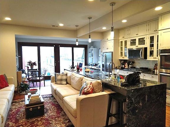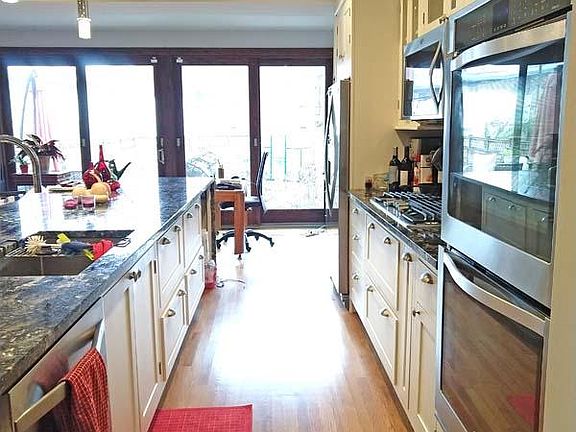 Two family, three bedroom townhouse. Basement 1BR Apt Newly renovated, Separate entrance and separate egress, modern kitchen -- stone countertops, Ref w/ice maker, microwave, range, DW -- Radiant tile flooring throughout, mini-split HVAC, internet, security, smoke detectors. Upper apartment is 2BR, w/central HVAC, Living Room, Dining Room, Modern Kitchen w/Granite 13' kitchen island, double ovens, gas cooktop, ref w/icemaker and Sitting area and 1/2 bath on First Floor. Outdoor deck off main living space, full yard/garden; two bedrooms, one full bathroom and laundry on second floor. Newly renovated in 2016.