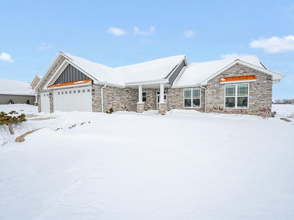 Stunning custom home with over $50K in updates! Thoughtful details throughout including custom cabinetry, granite counters, wine cooler, and huge walk in butlers pantry. Enjoy entertaining in this open concept home! Gourmet kitchen with top of the line appliances. Split bedroom layout with private primary suite featuring spa-like en-suite with heated floors and huge walk in closet. Back patio to relax in the summer months. Installed yard and thoughtful landscaping. Heated three stall garage with basement and back yard access. Zero entry from garage to mudroom and entry to patio. Situated just 15 minutes of Appleton or Green Bay. Move in ready! Pictures have been virtually staged.