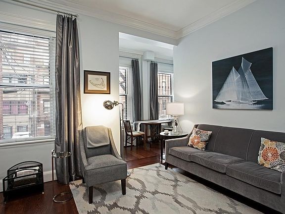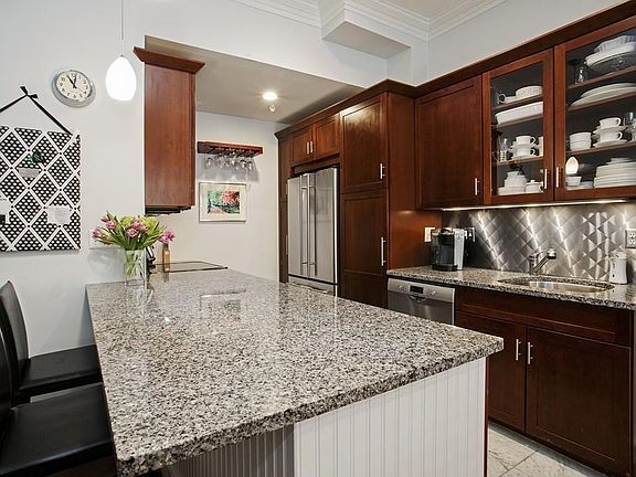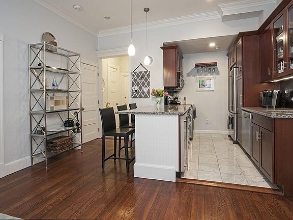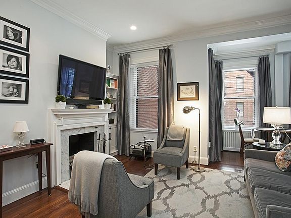 Renovated One Bedroom with 1.5 Bathrooms in a classic Back Bay brownstone located on a great block of Marlborough Street! Lovely marble foyer leads to an open floor plan with hardwood floors, crown moldings, fireplace and 10 foot ceilings! The renovated kitchen has a wine refrigerator, top of the line stainless appliances and back splash. The dark wood cabinets compliment the granite counters and breakfast bar. There is an alcove for dining or an at home office. The Master Bedroom has an ensuite bath with attractive sea green glass tiles. Pet friendly and professionally managed. Two blocks from the Prudential Center, Market, Shopping, Transportation and more! This home should not be missed!
