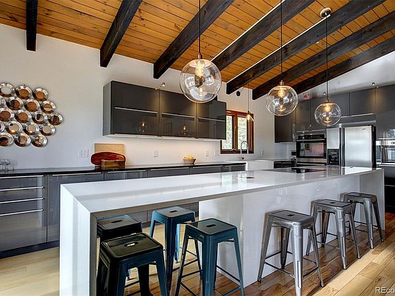 Don't miss this gorgeous home in the Upper Bear Creek valley of Evergreen! Remodeled 4 bedroom beauty on a secluded, flat acre with paved drive, extra parking, metal roof, open floor plan and a modern kitchen for entertaining. Watch the deer and elk in your yard from the newly built decks while the kids play, and enjoy the views of the stars from your hot tub at night. Open, functional floorplan boasts a separate guest area, and three family/living room spaces. Lots of custom touches throughout this mountain contemporary home which sits just 10 minutes up county maintained, paved roads from Evergreen Lake and Evergreen Golf Course, 3 minutes farther to shopping, dining, and art galleries in downtown Evergreen. This home is on Evergreen Metro sewer service -- no septic system to worry about. Few homes in this area are priced under $1 million, and this one is priced to sell.