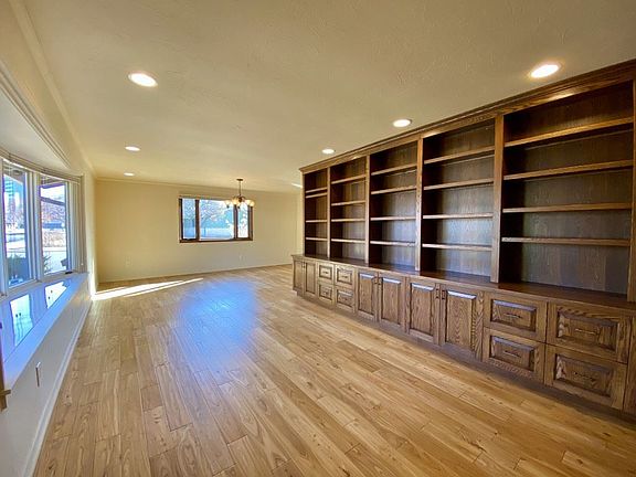 Nicely remodeled rancher on a cul-de-sac in established neighborhood. Open floor plan with nice natural light. Wood floors throughout the 2 seperate living areas and dining area. family room has a gas log fireplace and living room has custom bookshelves. Remodeled kitchen with island, custom cabinets and quartz counters. Pull out shelves in cabinets and pantry cupboards. Home is warmed with in-floor radiant heat and cooled with central air but the cost is minimal due to the owned solar panels and buy back contract with Xcel. New 97% efficient boiler. All appliances including washer/dryer remain. Master bath is handicap accessible. 3-car garage with 3rd bay set up as workshop with 220 line. 2 sheds in the back yard.