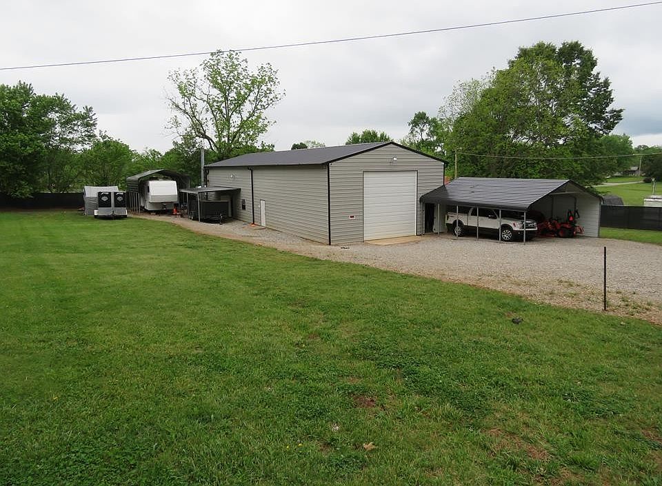 Motivated Seller!! Endless possibilities w/ no restrictions or zoning codes! 3000+ sq ft insulated building recently updated w/ 16ft electric garage doors, security cameras in & out, gutters, 18ft electric gates attached to the privacy fenced area & multiple carport additions for extra storage. Covered 30' 5th wheel area that stays w/ property. Building includes washer/dryer, fridge, a full office + half bath, loft area & 3 large work areas!
