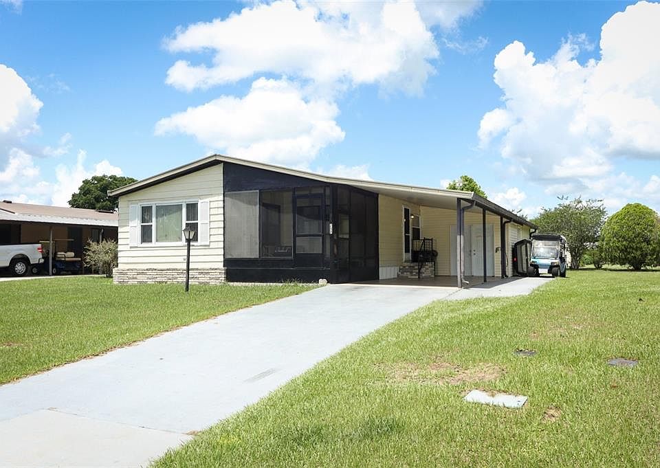 Come check out this wonderful 2 bedroom 2 bath home located in the highly sought after community of Polo Park. This home is very well laid out with 2 large bedrooms, a spacious living room and a Florida room that is under air and can be easily utilized as a third bedroom. This home also has beautiful bamboo flooring, multiple new windows and lots of outdoor storage. AC was replaced in 2019. The kitchen is open and spacious and the dining room can accommodate a large table. Polo Park is a very popular 55+ community with a golf course, 2 clubhouses, 2 community pools, pickleball and tennis courts, shuffleboard, a library and a fitness center. And if you do decide to venture outside of Polo Park, you are only minutes from shopping, grocery stores and many restaurants. Disney is also a short distance away too. The golf cart is included as well! This home can be purchased furnished, including the tools in the storage shed. The plumbing was just replaced in July, and the roof will be replaced prior to closing or buyer can choose a credit at closing.