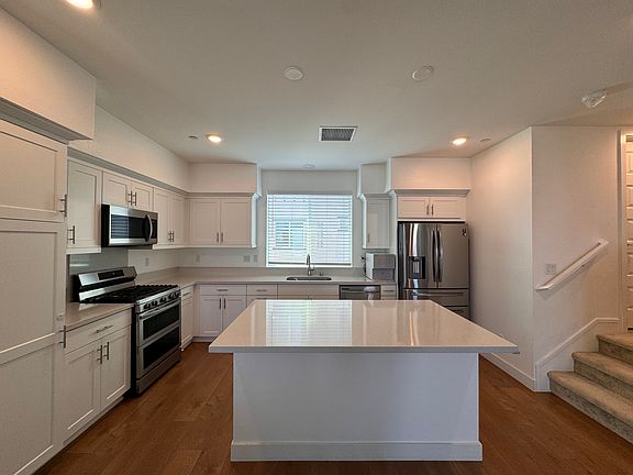 Town home available for rent! This unit has 4 bedrooms (3 on the third floor and 1 on the first floor), 3.5 Bath (2 full baths third floor, half bath second floor, and 1 full on the first floor), and a 2-car garage. The home is a corner unit with with a square footage of 2013. The home has been upgraded with laminate floors, large kitchen with quartz countertop island, a walk in closet in master bedroom, and balcony on the second floor. Lease term is at least 1 year. No smoking allowed and no pets. Renter pays for- water, gas, electric, trash, and solar system ($42/month). HOA dues are paid by the owner. First + last month's rent and security deposit due at signing. No smoking, no pets. Lease duration- minimum 1 year.