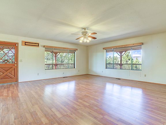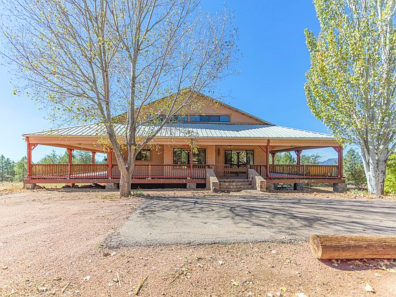 Panoramic Views of Mogollon Rim from this custom home that is over 7,000 sq. ft. with steel construction, metal roof, stucco siding. Main level hosts spacious 28'x17' living room, 20'x 9' master suite, dining room and large kitchen with walk in pantry, stainless refrigerator, gas range large island for gathering. You can enjoy the views from the 11.5' wrap around red wood.deck. Five 3,000 Gal water storage tanks with filtration system for the home and one 3,000 Gal water storage tank for landscaping, plus surface water rights from the State of AZ that is transferable, plus hook up to local water company.