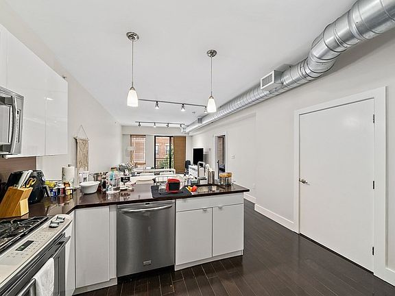 Just look at these amazing views from the common roof deck!!. Built way ahead of it's time in 2011, the building was envisioned by the esteemed award winning designer, Dennis Duffy. Not only is it timeless, it has a unique and MODERN style that offers functionality with luxurious details for the most discerning eye. This stylish 2 bedroom,1.5 bath unit features espresso flooring and floor to ceiling windows that captures maximum natural light, a gourmet kitchen with custom white cabinetry contrasting with warm chocolate counters and stainless steel appliances. The large bedrooms have great closet space and the laundry room has ample space that provides more additional storage. The private balcony extends from off the master bedroom to the living room . The unit also has one deeded parking spot. Walking distance to Northeastern, Copley Square. Mass Ave Train Station. Conveniently close to I93 and I90. Located in the vibrant and culturally rich South End, this place is an absolute steal