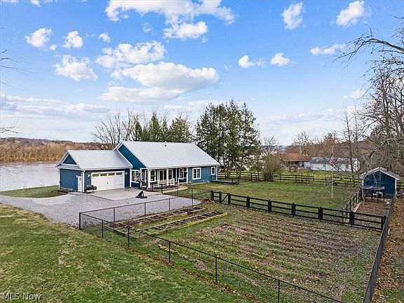Ohio River property!!!! This ranch style home was built in 2018, with 4 bedrooms, 2 full baths, and includes a full walk-out basement. This property has 2.46 acres, with 100ft. of Ohio River frontage, nice front yard, partially fenced back yard, and includes the woods that go back to Newbury Rd. Vaulted ceiling living room is open to the kitchen that offers quartz counter tops, corner pantry, and ample cabinets & counter space. Oversized two car attached garage opens into the 1st floor laundry/mud room, which leads directly to the kitchen. The peaceful master suite offers a 7x4 walk-in closet, and private bathroom with a stand-up shower & soaking tub. The lower level offers a large storage room, a 24x15 rec room with cabinets & counter space, and the unfinished area in the lower level walks out to the back yard. The convenience of all first floor living, with a spectacular view & setting, this home is one to see!