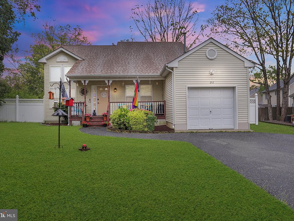 Welcome to your charming new home in the heart of Manahawkin's coveted Ocean Acres neighborhood! This delightful cape-style residence boasts a perfect blend of comfort and style, starting with its inviting front porch and beautifully landscaped yard. Step inside to discover a thoughtfully designed layout featuring three bedrooms and two full bathrooms. The first floor greets you with a spacious living room adorned with high ceilings, seamlessly flowing into a cozy dining area and a well-appointed kitchen, ideal for culinary endeavors. Completing this level is a convenient bedroom and a full bathroom, along with a versatile den offering additional space for relaxation or work. Ascend to the second floor to find two more comfortable bedrooms and another full bathroom, providing ample accommodation for family and guests alike. Outside, the allure continues with a generously sized deck, perfect for hosting gatherings or simply enjoying al fresco dining amidst the serene surroundings. Plus, with a newly redone deck and front porch, along with recent upgrades including a new roof, resurfaced kitchen countertops, and fresh carpeting on the second floor, this home offers both charm and modern convenience. For pet lovers, a fenced-off dog run area adds to the appeal, providing a safe space for your furry friends to roam and play. Don't miss the opportunity to make this wonderful property your own. Schedule a showing today and start envisioning the countless memories waiting to be made in this beautiful Manahawkin home! Showings start May 24th.