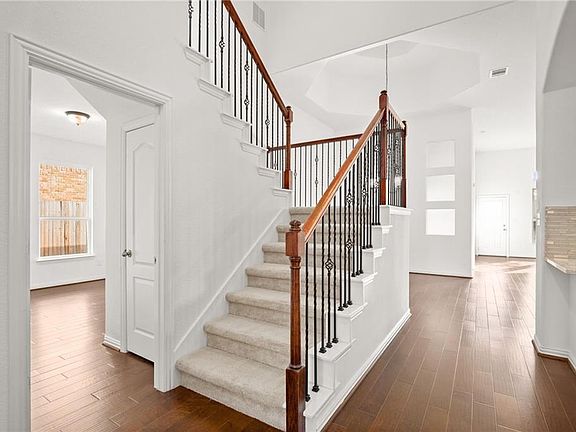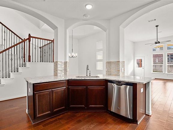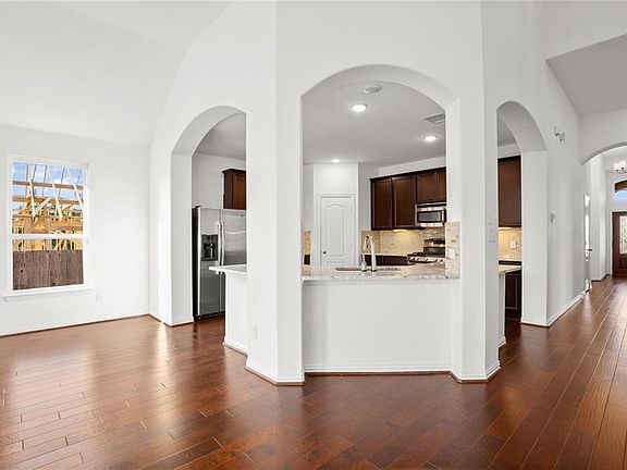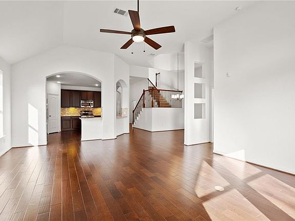 Former Model Home ready for move-in now! Beautiful Glenwood floor plan PLUS an added bonus room upstairs with a full bathroom. Elevation B with stone upgrade and lush model landscaping. Additional upgrades galore including fireplace with ceramic tile surround, covered backyard patio and surround sound in master and living room. Timeless arches, high ceilings and wood floors make this home stand out from the rest! New interior paint! Walkthrough video and in-person tours available!