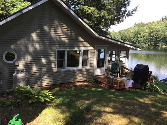 Summer Time Camp! Lovely well cared for property with open floor plan hosting a ¾ bed in the main room, queen bed on the porch and two twin beds in loft. Updated bathroom with heater and shower; closets too for storage! The porch is 8x24 and loft is 10x24 and finished with storage in the eves behind Louvered doors. All windows have been replaced and vinyl siding. Multiple sheds, one with power and water with washer/dryer, another shed for garden tools, and shed near the water with power. Water source is the pond. No showings till it opens in May 1, 2018.