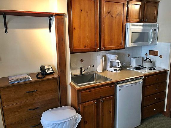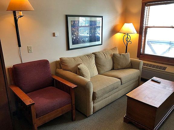 Rimfire junior studio. Galley kitchen, full bath, Murphy bed with sleeper sofa, gas fireplace. Sleeps 4 (SN) 306 sq/ft