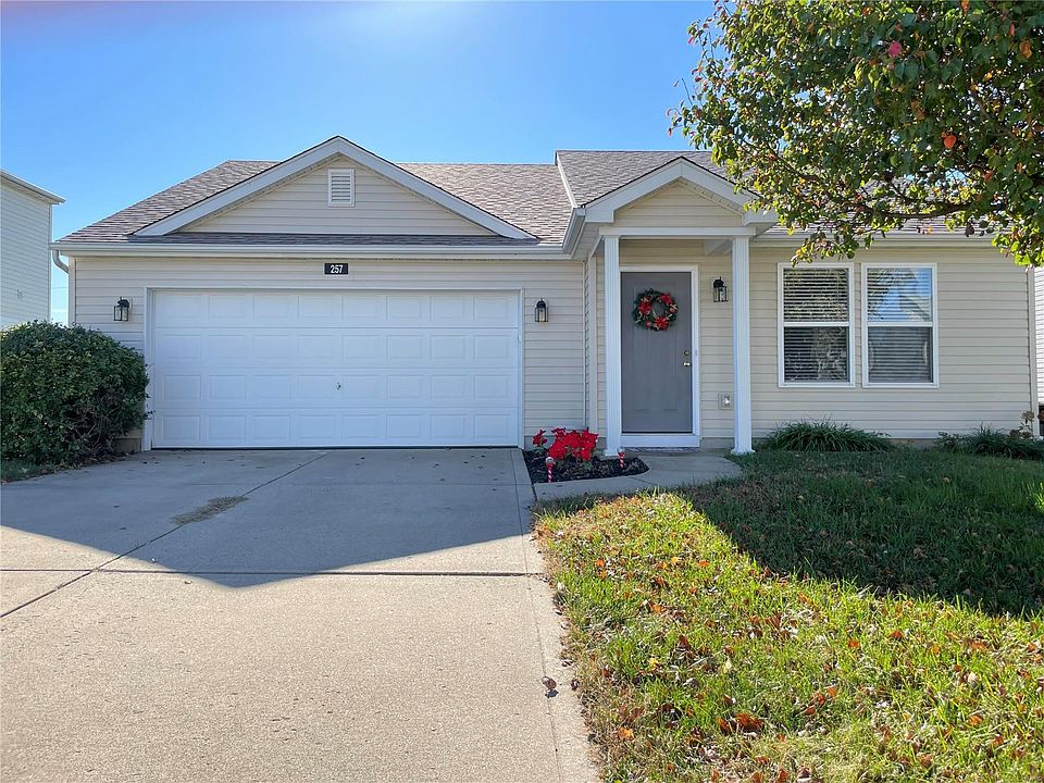 This 2 bed 1 bath home, has wheel chair accessible ramp in garage, large living room dining combo, giving you a nice open floor plan, eat in kitchen, stainless steel appliances, and pantry. New flooring throughout, new roof as of 2022. Master bedroom has sizeable walk in closet. Property backs up to farm field giving you plenty backyard privacy.
