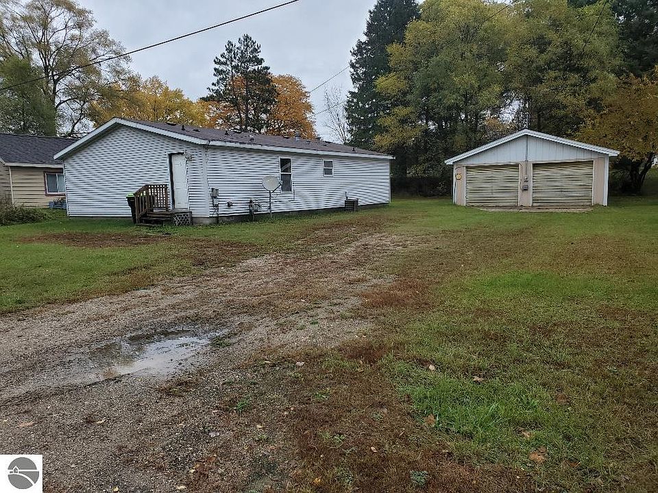 Double-wide featuring ample sized living room, kitchen & dining area, primary bedrooms and bath, additional 2 bedrooms, and another full bath. Detached 2 car garage. Located in Village of Farwell.