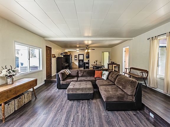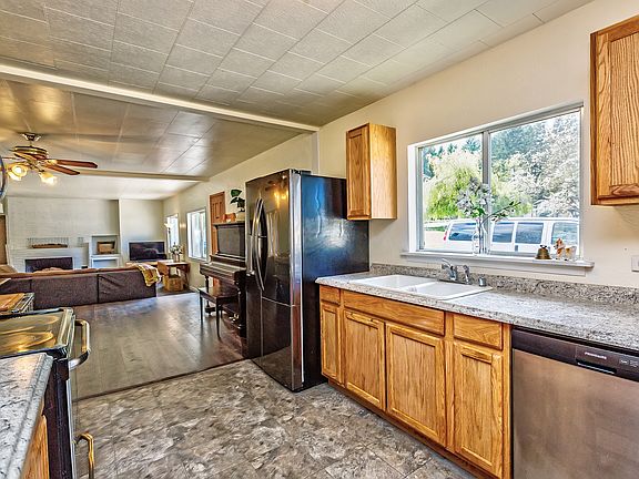 This ranch style home sits on 1.37 fully fenced beautiful acres! 3 beds/2 baths, new flooring & fresh paint, new kitchen cabinets & counter tops, stainless steel kitchen appliances, large master w/ walk in closet, office space & full bath, large mud/utility room, a picnic area with a fire-pit in the front yard, HUGE separately fenced front & back yards PLUS a garden area & pasture! Large detached shop & 2 car carport. Plenty of privacy & country feel but walking distance to stores & restaurants!