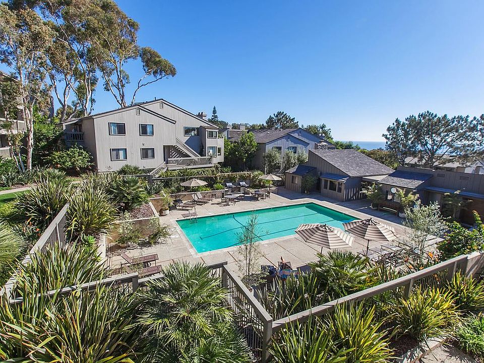 Large beach condo at the end of Stratford Ct in beautiful Del Mar. Easy walk to the beach and village with lots of shopping, dining and the Del Mar happenings! Enjoy gorgeous ocean views from the moment you walk through the door. Sit down views from living room, dining room, master bedroom and bedroom 2. Unbeatable price for amazing location! This condo has a spacious layout with a bright and airy feel. Upgraded kitchen with granite counter tops, stainless appliances, brand new carpet, new patio, washer and dryer in unit. Enjoy 2 parking spaces near the condo. 1 covered parking underground and 1 uncovered. Great amenities feature tennis courts, pool, spa, clubhouse and gym. Owner pays HOA: water, trash, sewer, amenities, 1 year lease or longer
