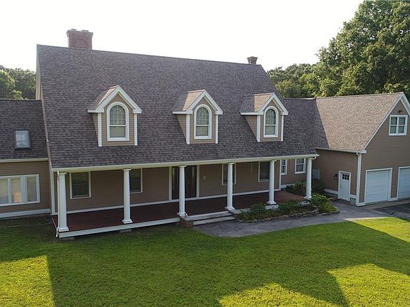 Superbly magnificent 16 room Cape Cod IN MYSTIC!!! Secluded rear lot rests on 2.11 acres and offers 5 bedrooms, 3 full and 2 half baths, 5,303 sf and possible in-law or caregiver apartment. This impressive 3 dormer Cape has a 6 pillar covered porch, formal dining room, a remarkable eat-in gourmet kitchen with subzero appliances, granite counters, 4 seater breakfast bar, lots of cabinetry, bow window, dining area that opens to the outside deck, center island cooktop with down draft vents and ample storage. Off the kitchen is the living room with a wood fireplace and through the French doors you will find a grand and elegant sunroom with skylights, beautiful windows, cathedral ceiling and slider that leads out to the hot tub ideal for everyday pampering. The library is off the sunroom and displays built-ins and hardwoods. Needing a quiet place to retreat, the den with its wet bar will provide that space for you. The upper level bedrooms include a large Master Suite with lavish bath, walk-in closet, 4 additional closets and bonus room. Home features central air, Thermopane windows, gorgeous hardwoods, an energy efficient 4 zone hydro air heating that allows you the flexibility to heat your home the way you want. Sizeable deck for the ultimate outdoor entertainment showcases a built-in grill with buffet style space and bench seating with flower boxes atop and extends to the spacious pool area and patio with an expansive 30,000 gallon in-ground pool and hot tub. This spectacular Cape is complete with a floored attic, large laundry room with built-ins, lower-level family and exercise room that maximizes additional living space in the full basement, an outdoor dog kennel, and attached/detached 6 car garage. Home is truly a hidden gem!
