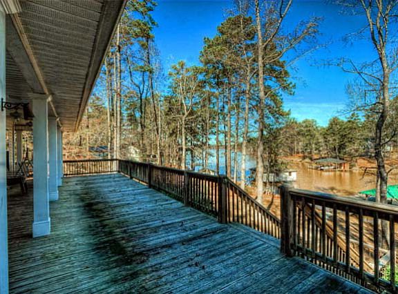 Easy lake living at it''s best! This stylish Custom Built residence is nestled on a large lot with 200'' of waterfront in a desirable and tranquil area of the lake, only minutes to shopping and restaurants. The floor plan encompasses 3 spacious bdrms, with master on main, 2 1/2 bths, a sleek and stylish kichen, a formal dining or office area, and a luxurious living room with cathedral ceilings, oversized lakeside widows and french doors which provide beautiful lake views and lots of natural light. The partially finished basement provides lots of expansion oppportunities. This southern charmer has a beautiful wrap-around porch and lakeside deck perfect for entertaining. For your lake enjoyment there is a double boathouse with lifts and max sun deck. Perfect for a family or vacation retreat.