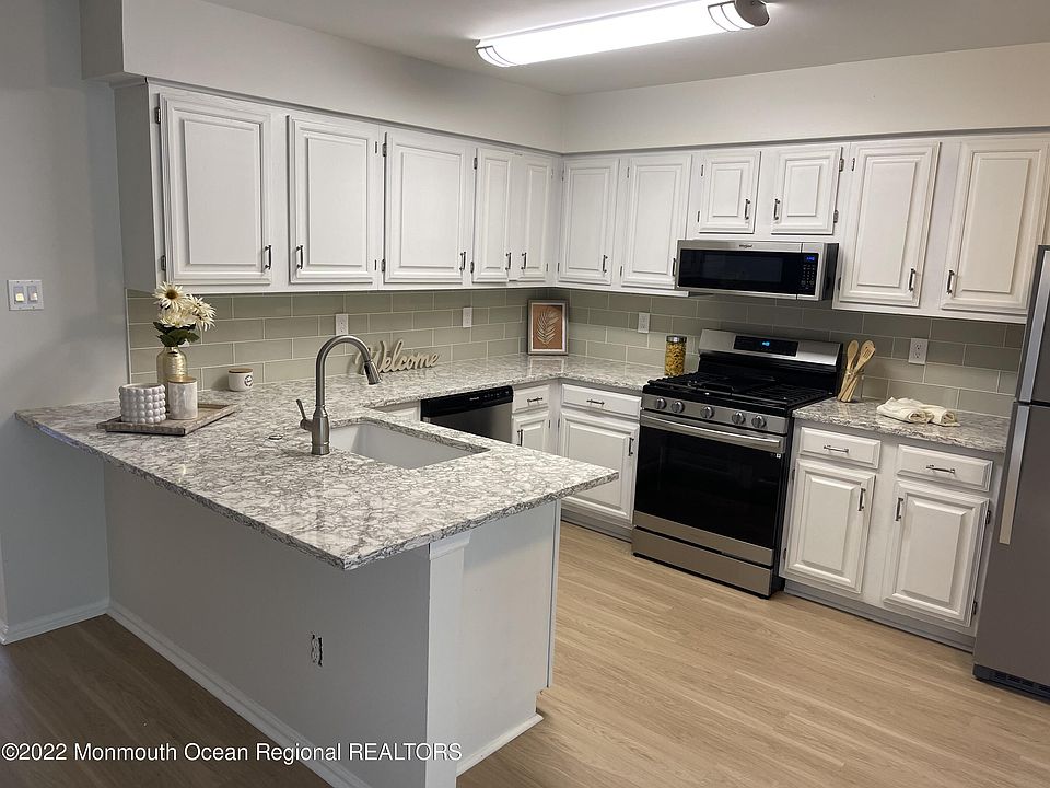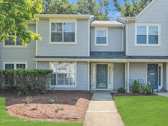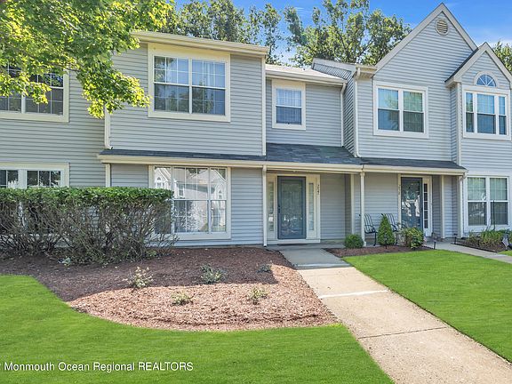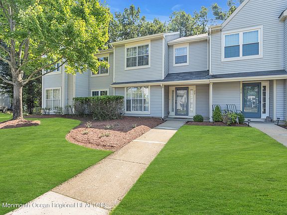 Totally renovated and updated townhome with all new appliances is located in the desirable Pointe O' Woods Community. Home boasts 3 bedrooms and 2.5 bathrooms. Enter into a spacious living room and dining room combo, excellent for entertaining. New laminate flooring throughout the first floor extends into the spacious Eat-In-Kitchen with wood-burning fireplace that has been recently renovated with granite countertops, stainless steel appliances, and a gorgeous large fireclay white sink with garbage disposal. Second floor also has all new flooring and comfortable new carpeting on the staircase. Primary bedroom with WIC, new bathroom with marble countertop, stunning tiling, and a large custom walk-in all glass-enclosed shower with 2 shower heads including a rain shower and built-in seat. 2nd bathroom is also beautifully and completely redone. New laundry room on the 2nd floor. Glass slider leads to a private patio backed up to the woods, perfect for BBQs. Community offers a swimming pool, tennis and basketball courts. Easy access to Rt 9 and Howell Park and Ride. Ready to move in! Make your appointment today! This is a PET FREE Community.