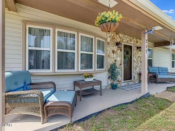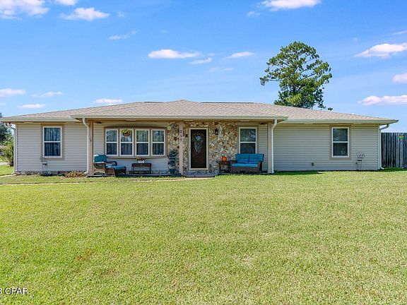 Beautiful move in ready home located in a quiet, friendly neighborhood close to Tyndall Air Force base, schools, parks, boat launches, and shopping. The open front porch and well-maintained corner lot has great curb appeal and is an inviting site to friends and visitors. The walls throughout the home are painted with neutral colors that will match any home décor. Enjoy family get togethers or game night in the huge open family room and kitchen with a breakfast bar. Kitchen has plenty of counter and cabinet space central to the dining room, family room and laundry room. Have relaxing quiet evenings sitting around a wood fire in the custom stone fireplace. Large master bedroom easily fits a king size bed with attached full bathroom and double French doors that lead out into the screened in porch and pool. The open living-dining room combination is perfect for family meals and a quiet place to entertain company. The privacy fenced back yard and screened in porch are great for BBQs and swim parties Newer roof and water heater with a high efficient heat pump and ceiling fans in most rooms. Large 2 car oversized garage that leads into the laundry/mudroom and ½ bathroom. Driveway has a circle driveway and plenty of space for your boat or camper. All measurements are approximate, please verify if important. Call your favorite Realtor® for a showing today.
